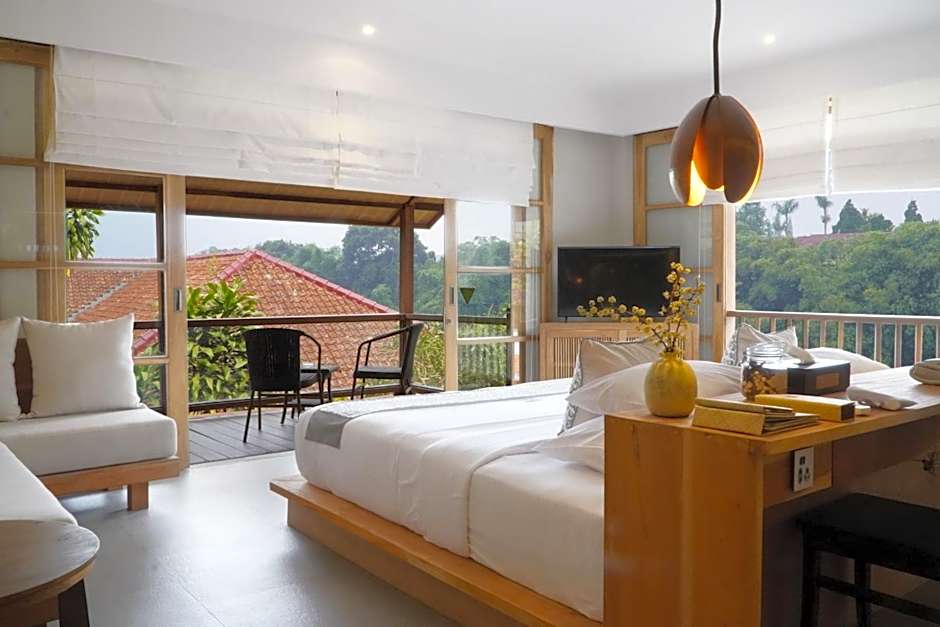 Newly renovated stylish contemporary design featuring wood and furniture, bring the room a modern twist in the middle of greenery scenery.